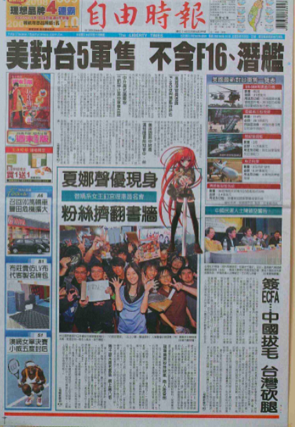台湾で釘宮病患者が大量発生 台湾 2010年02月13日 このネタはちょっとタイミングを逸した感があったのでスルーしようかと思ったんですが、こちらのブログでの紹介のされ方が愉快だったのでリンクを貼っておきます。詳細はリンク先をご覧戴くとして。 何で別の国なんだろう台湾。それともここは釘宮病の感染力を褒めるべきなんでしょうか。 あと、拾い物ですが、台湾の新聞「自由時報」で1面トップだった画像があるのでそちらもご紹介させていただきます。 自由時報は日本で言うと読売新聞でしょうか。発行部数は台湾で1番だったはずです。 該当記事を拡大します。 「傲矯系」ってのは「ツンデレ」と解釈していいと思います。ですので見出しは「シャナの声優登場」「ツンデレの女王釘宮理恵サイン会」「ファンが押し合って本棚がひっくり返る」という解釈なると思います。日本の新聞だって1面で「ツンデレ」とか書かないというのにあの国は…。 [2回]