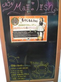 このイベント中はメイドさんがもやしもんのキャラコスをしている。この日はゴスロリ版の蛍、農大ツナギを着て金髪の直保、前にも後ろにも『攻撃』と書かれたチアコスの人、帰国直後のツナギ武藤の計4人がいた。