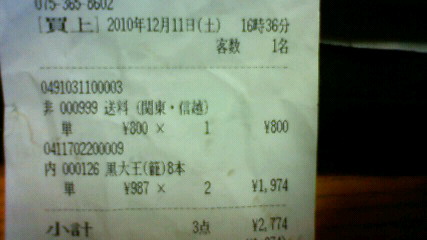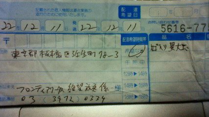 それでも何かないかと探してみましたら当日のレシートと宅急便の控えが出てきましたのでアップさせていただきます。