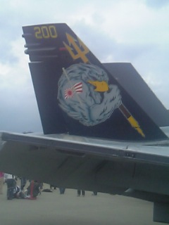 腹もくちくなったところで、今度は展示されている機体を見て回る事にした。海兵隊と海自あわせて何十機もあるので、これだけでも結構時間がかかった。目当てはいかにもオタっぽいノーズアートだったのだが、上からのお達しでもあったのか、ほとんどの機体にノーズアート自体がなかった。せいぜいが、尾翼に描かれた部隊のマークがアメコミぽかった程度で、こちらの期待はあっさりかわされた。