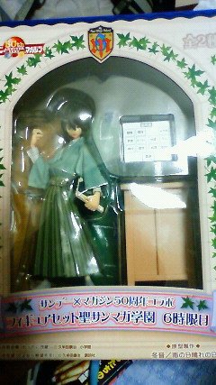 入手しました 絶望先生 2009年03月14日 なんばのゲーセンにてサンマガ学園6時限目、糸色望確保しました。2000円ほど掛かりましたが、それが安く感じる程良い出来です。 あんまり良い出来すぎてもったいなくなってまだ開けられずに居ます。取った時はちゃんと開けようって心に誓ったのになあ…。また機会を見つけてちゃんと開けて、内容物のレポートしたいと思います。それまでしばしお待ちください。 [0回]PR