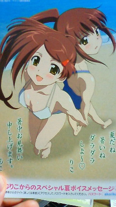 とりあえずパッケージを開けるとこの時期に暑中見舞いのポストカードと5巻限定版の申込書がお出迎え。でもこの申込書、あこりこがスカートまくり上げてかむひあーなイラストになっているので、もったいないのと社会的地位が危うくなるのとで、なかなか使用するのは難しいかと。
