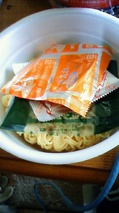で。実際食べてみると、そんなにニンニクはきつくなく。久々にノンフライじゃない普通のカップ麺を食べた割には胸焼けもせず。「ああ、これはなかなか」と思いつつガンガン食べていると、袋が1つ余っていることに気がつきました。
