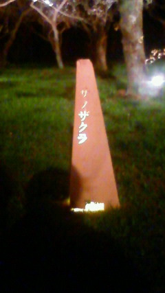 ただいま夜桜見物中 つれづれ 2009年04月05日 本日妻のお供で二条城に夜桜見物に来ているのですが、そんな状況下にも関わらずサノザクラの文字に反応してすかさずこんなものを撮影してしまう私はどんだけ絶望放送に毒されてしまったのでしょうか(携帯の画像なんで写りが悪く、文字の判別が出来ないかも知れませんがカタカナで「サノザクラ」と書いてあります)。 [0回]