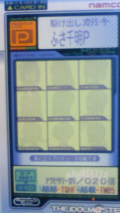 部屋の片付けをしていたら懐かしいものが出てきました つれづれ 2013年06月02日 ハイ。アケマスカードでございます。 昔々のその昔、私が千葉在住だったみぎり、津田沼にある某ゲーセンにて筐体を見つけ、みなさまお馴染みのあの社長の呼び込みに誘われて作ったのがこのカードでございます。 多過ぎる選択肢に散々迷った挙句、弱々しい声と仕草に保護欲をかき立てられ雪歩で始めまして。バイトの帰りに立ち寄っては自分なりに頑張ってみましたが、最初のエンディングを迎えたところで資金的事由により撤退いたしました。 まだその頃は『腕が良ければワンコインクリアできるのがゲーセン』だった時代でしたもんで、ある一定額以上をつぎ込まないとエンディングにたどりつけないシステムを頭では分かっていても心がついていきませんでした。そのあと結局、マジックアカデミーやMJシリーズ等々に大量の資金をつぎ込むことになるんですけどもね。 ちょっと懐かしくなったのでアップしてみました。 [1回]